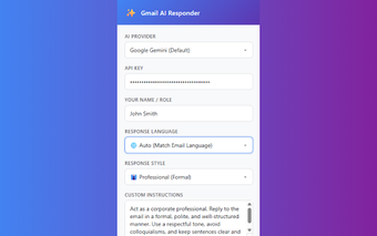 AI Responder for Gmail é uma extensão gratuita do Chrome projetada para otimizar a produtividade no gerenciamento de e-mails. Com suporte a múltiplos provedores de inteligência artificial, como Google Gemini, OpenAI, Groq e LLMs locais, essa ferramenta permite que os usuários respondam a e-mails de forma rápida e eficiente. A extensão é ideal para profissionais que buscam economizar tempo na redação de respostas rotineiras, oferecendo uma interface intuitiva que se integra diretamente ao Gmail.